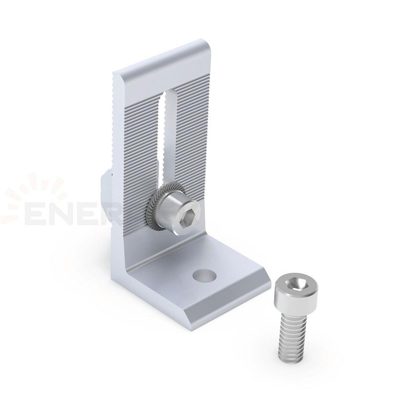 Les fixations Mid&End, de conception unique, sont conçues pour les modules solaires de 30 à 40 mm d'épaisseur. Leur conception, qui intègre des spécifications importantes, permet de réduire les coûts de stockage et garantit une installation rapide et facile. La conception innovante du support de base relié au rail renforce efficacement le produit et assure une utilisation en toute sécurité. Enerack propose une large gamme de supports pour toitures en tôle, offrant ainsi un large choix à ses clients. Des solutions personnalisées sont disponibles pour répondre aux exigences d'installation spécifiques de chaque client.